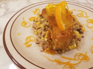 So I make lighter version of Chicken a l’Orange. It still takes decadent but with a LOT less fat, less sugar, and a LOT less calories.