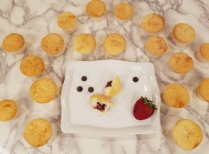 Watching your weigh doesn’t mean you can’t have dessert. A little bit of heaven every once in awhile is actually a good way to stay on your weight-loss course. If you deny your sweet tooth completely, you are more likely to go cray-cray on sugar and sweets, and make really bad decisions. Instead, try this recipe of angel food mini cup cakes with a fruit center.