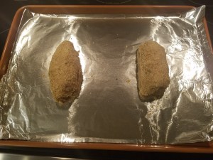 - Put the chicken on the foiled lined baking sheet