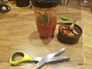 - While the chicken is baking for the last 15 minutes, put the rest of the can of stewed tomatoes and tomato paste in a blender (I used the bullet) and blend smooth