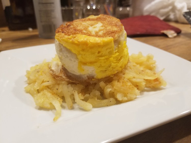 I paired the eggs with hash browns, but you can eat the egg plain or on toast.
