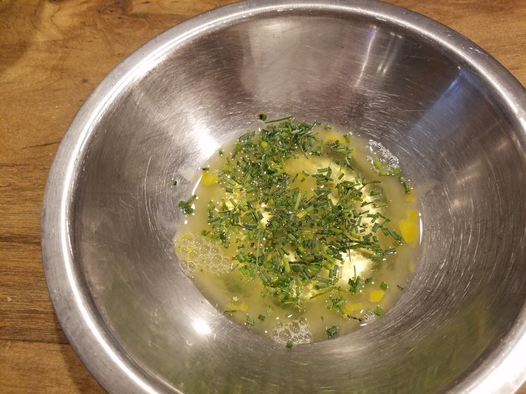 - Chop up a chive into small pieces and set aside