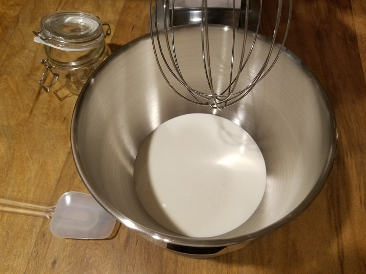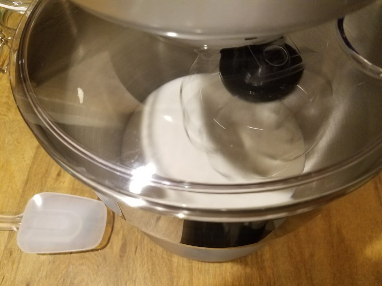 - You might have to turn the mixer off and scrape the sides and the whisk attachment a few times