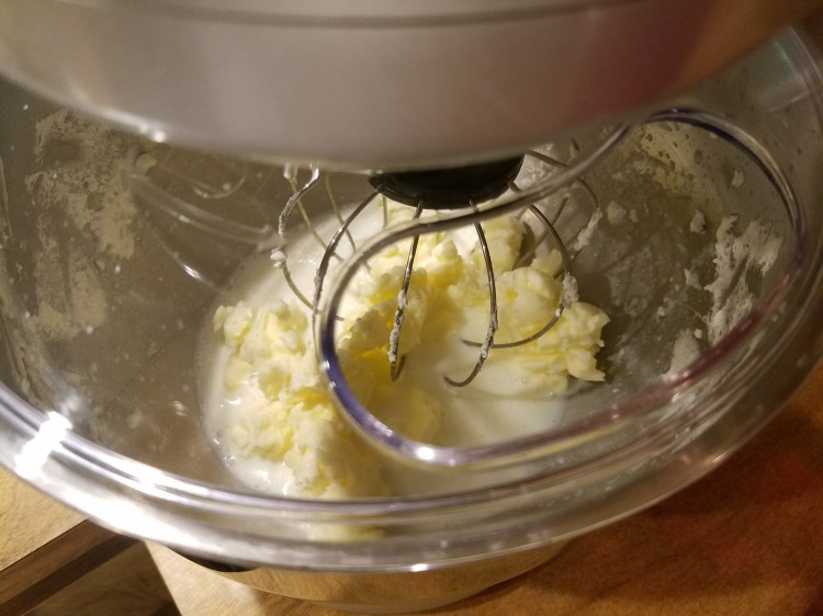 - Once you see the butter start to separate from the buttermilk turn the mixer on medium until the butter is fully separated from the buttermilk (about a minute or two)