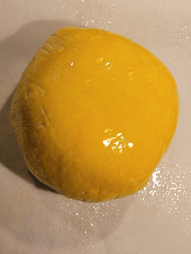 - After an hour, place another 3 sheets of plastic wrap on the counter.