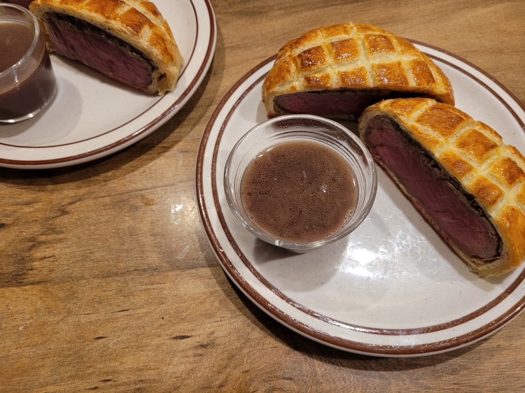 Beef Wellington is a luxury steak meal that can be made at home. The puff pastry makes an amazing presentation, the ingredients taste fresh and earthy, and the dipping sauce is light and aromatic.