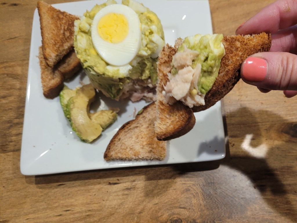 Have you ever had Tuna Tartar at a restaurant? Delicious, but who has that type of tuna at home? We all have can tuna! And with an avocado and egg, you can make the “tartar” tower at home. It’s a great low-fat, low-calorie, low-carb lunch or dinner, or even a quick appetizer for guests.
